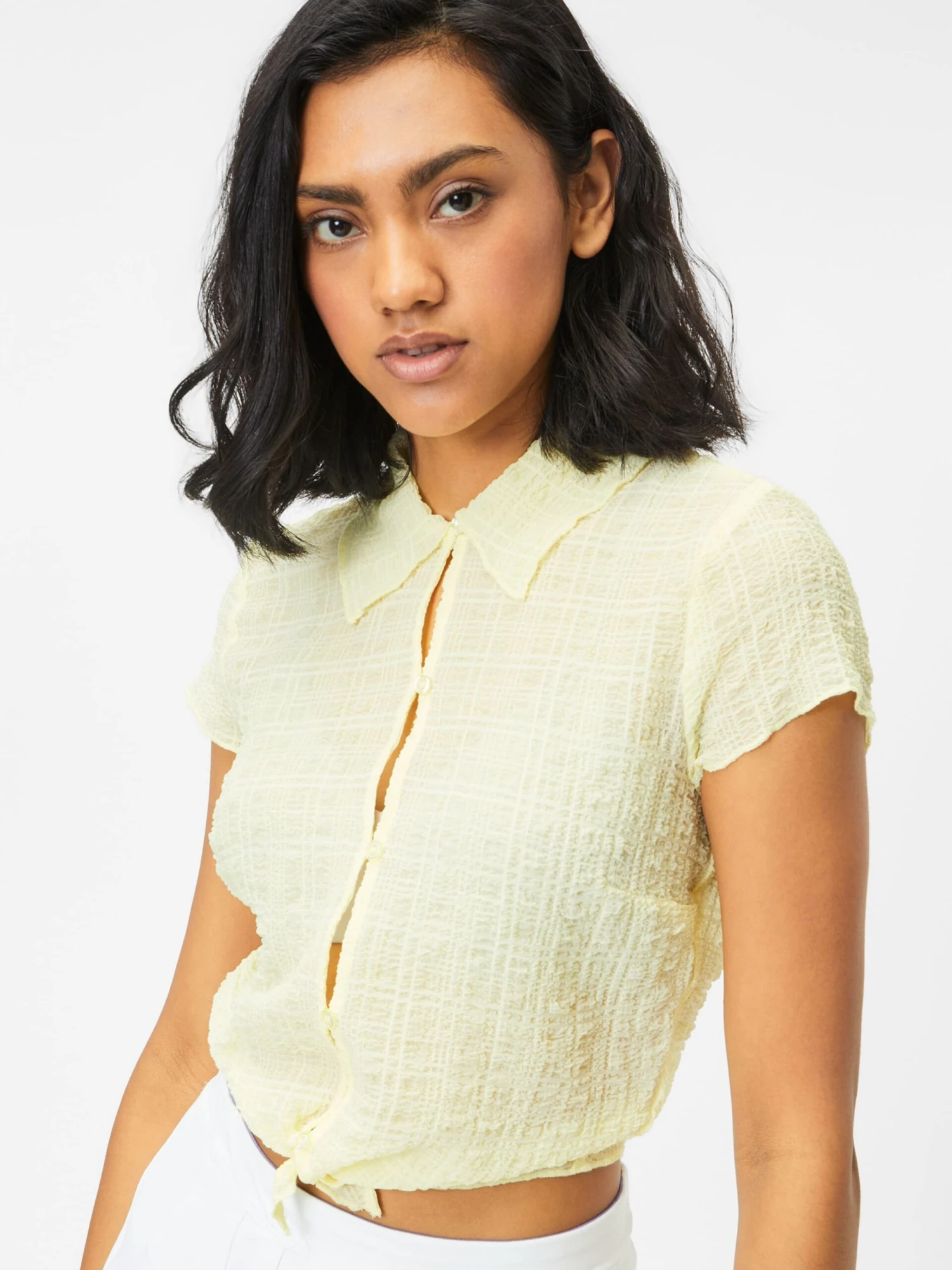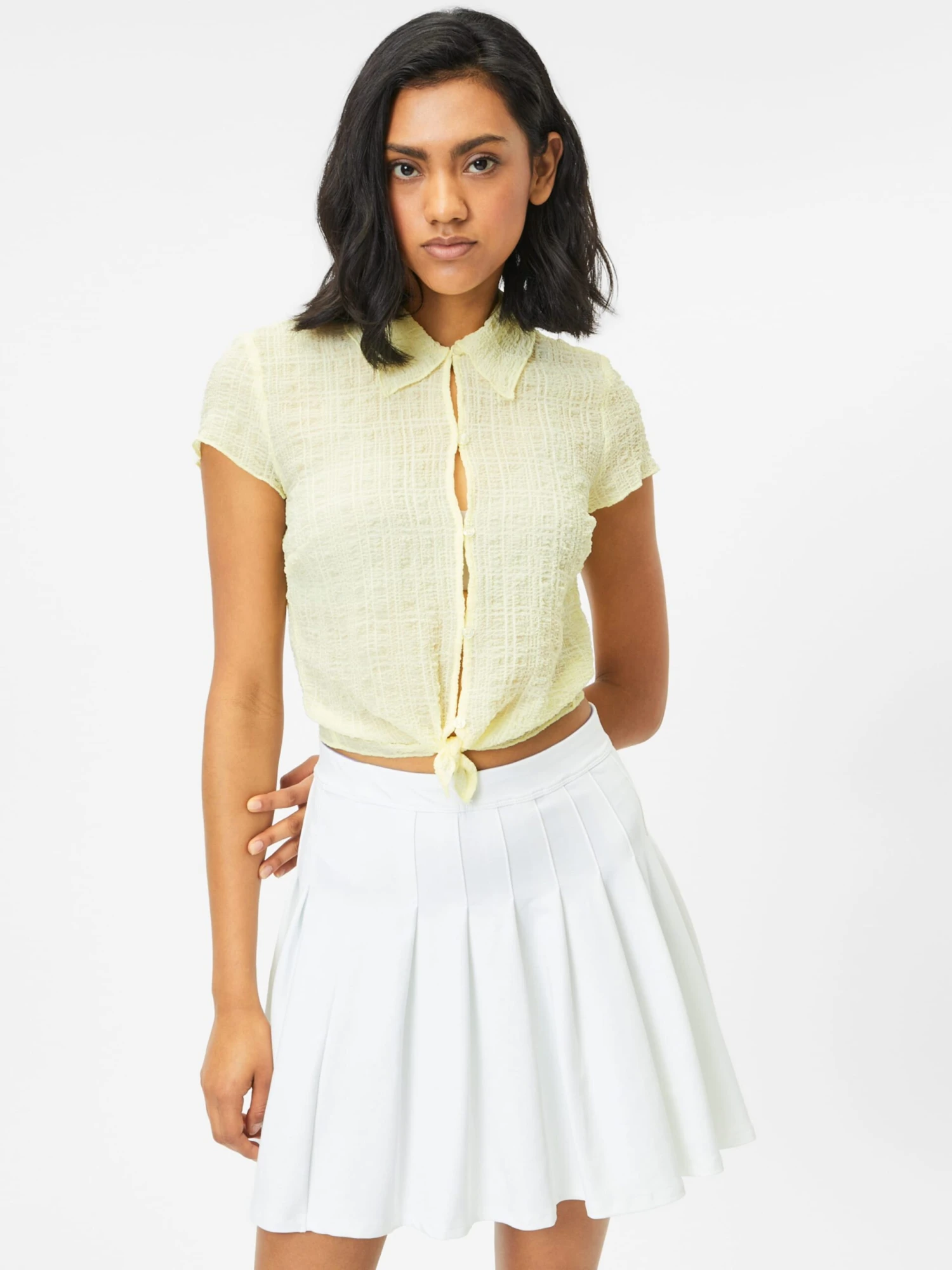 Couleur unieCol KentOurlet / bord surpiquéOurlet asymétriqueBoutonniÚre plaquéeCol rabattuà boutonner / nouerTissu légerPoignée structuréeChemisier classiqueFermeture à boutonPolyester recyclé