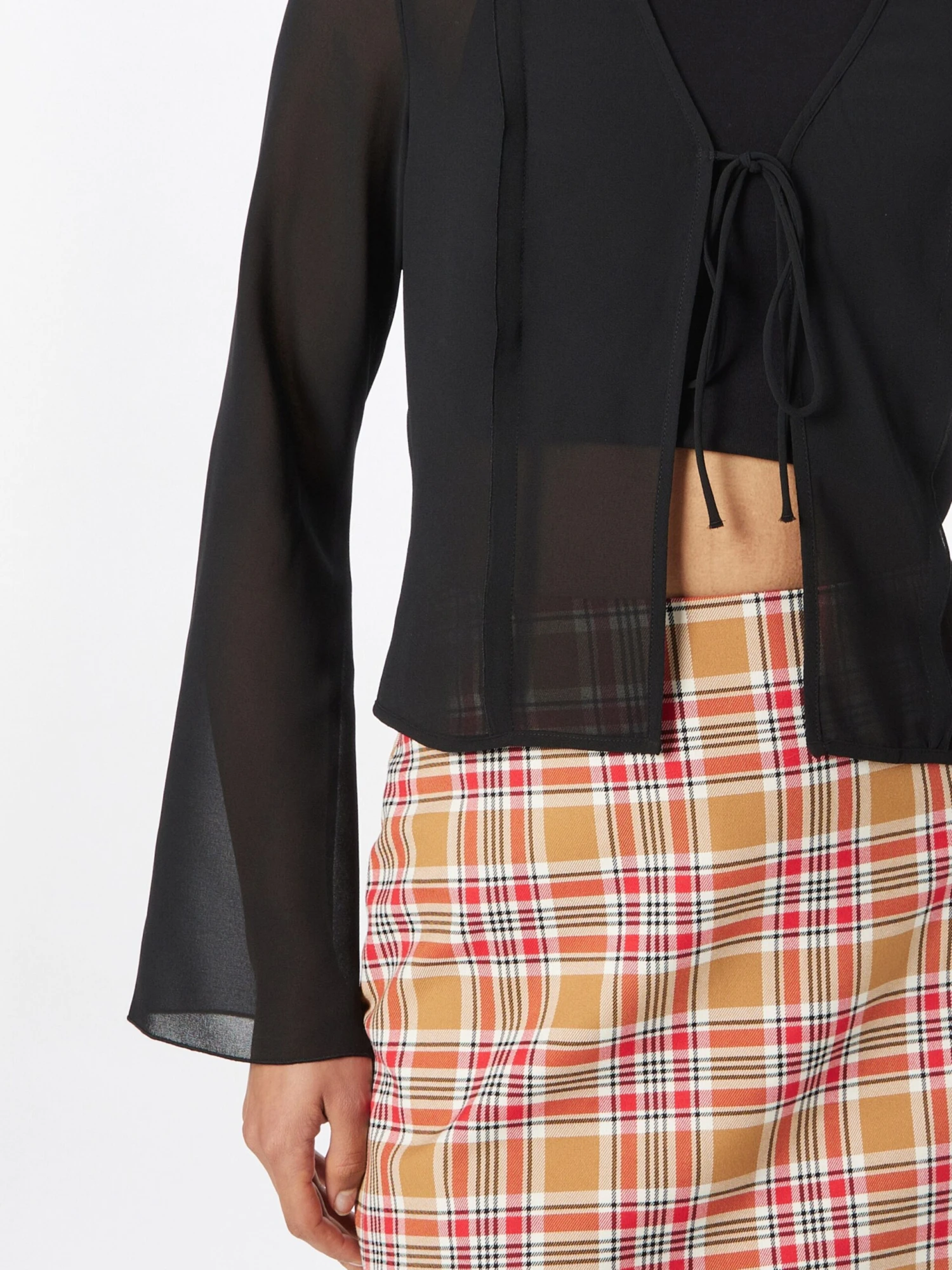 Couleur unieChiffonSans colOurlet / bord surpiquéManches trompetteÀ boutonner / nouerLégèrement transparentCoutures ton sur tonTissu légerChemisier classique