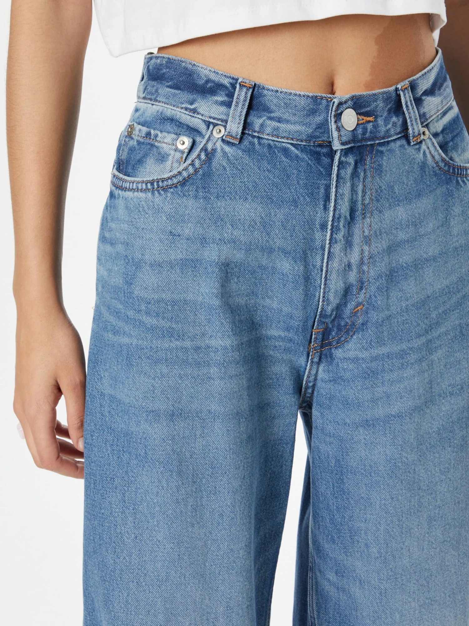 Couleur unieJeansHeavy washedStyle 5 pochesFermeture à boutonRivetsCoutures contrastéesEtiquette patch / étiquette flagBoucles de ceintureFermeture à glissiÚre