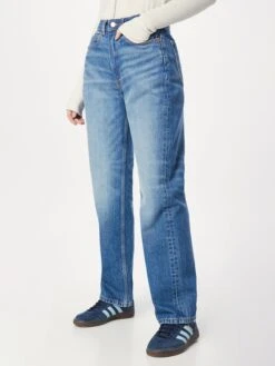 Couleur unieJeansBlue denim/washedOurlet / bord surpiquéZip FlyStyle 5 pochesRivetsCoutures contrastéesEtiquette patch / étiquette flagEffet lavéPrise fermeBoucles de ceintureFermeture à glissière