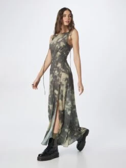 Dégradé de couleursBretelles spaghettiCol bateauFente au niveau de la jambeCoupe cintréeà boutonner / nouerMotifs all-overCoutures inside-outTissu fluide