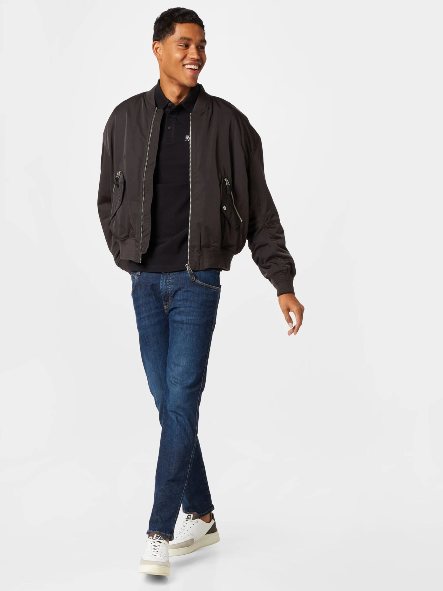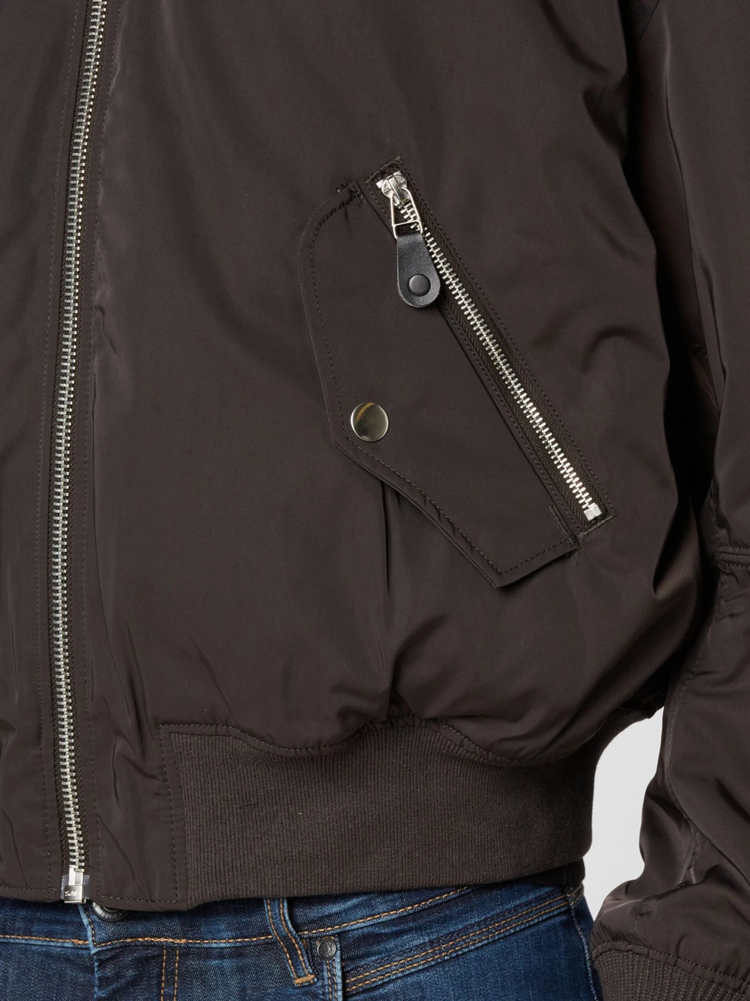Couleur unieBomberCol côteléOurlet droitBord côteléÉpaules largesPoches latéralesPoches latérales avec fermeture éclairCoutures ton sur tonTissu lisseLégèrement doubléFermeture à glissièrePolyester recyclé